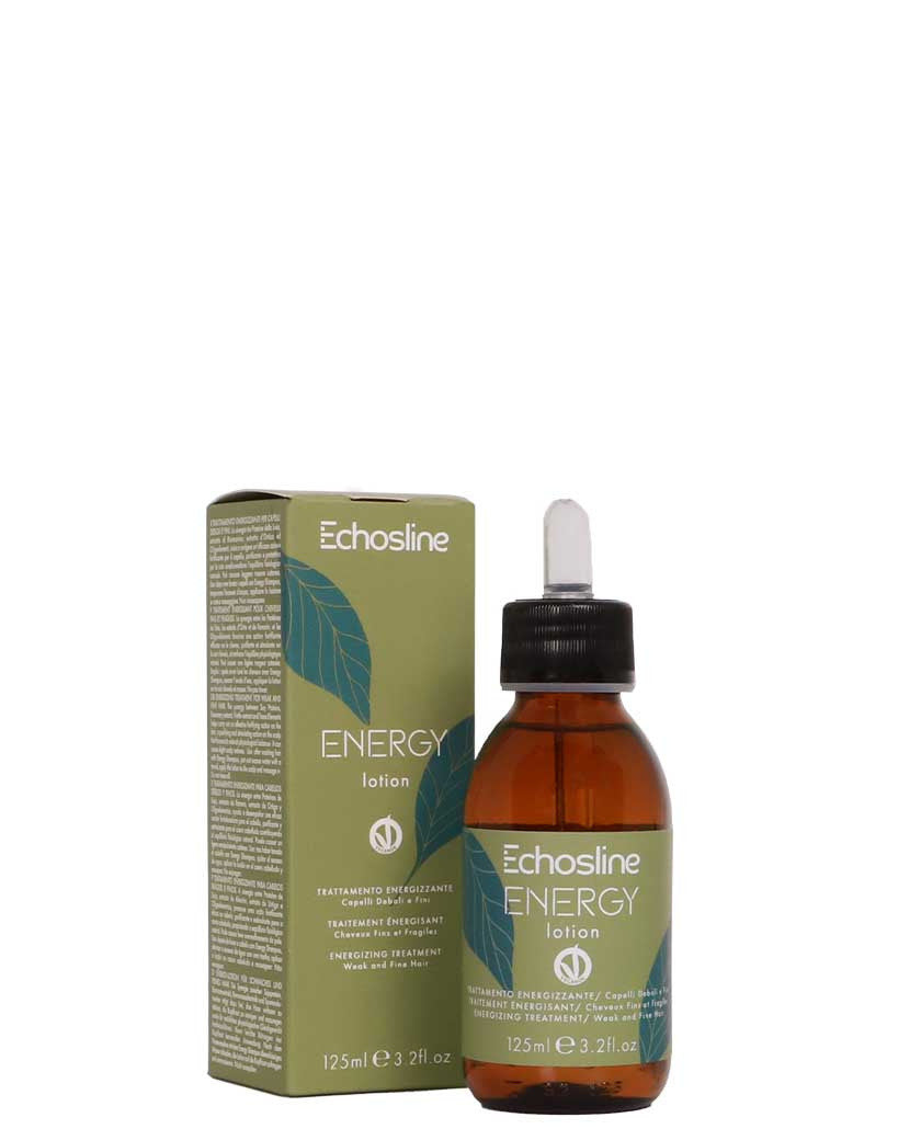 Echosline Energy Lotion is an energizing, leave-in treatment for weak and fine hair. Its formula, enriched with Soy Proteins, Rosemary, and Nettle, purifies and stimulates the scalp, helping to strengthen hair from the roots for a revitalized, fuller look.